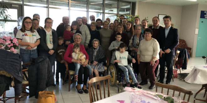 Samedi 4 janvier 2020, madame Germaine Paliot a fêté ses 100 ans entourée de ses trois enfants, petits enfants et arrières petits enfants. Cinq générations étaient présentes.