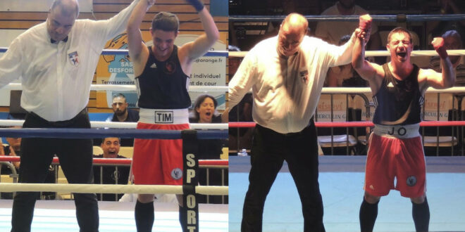 Quant à Joris qui revenait à la boxe après trois ans d’arrêt et seulement quatre mois de préparation, il affrontait Nass NAJAFI du club de Panazol. Le 1er round était dans l’observation avec une bonne gestion de Joris. Son adversaire le mit en difficulté sur le deuxième round. Mais l’envie de gagner et le courage de Joris faisait la différence au troisième, son adversaire, à bout de force crachant 3 fois son -protège-dents et écopant d’un avertissement. Victoire de Joris, et carton plein pour nous deux jeunes Estivareillois.