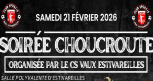Le CSVE organise une soirée choucroute à la salle polyvalente d’Estivareilles le samedi 21 février …